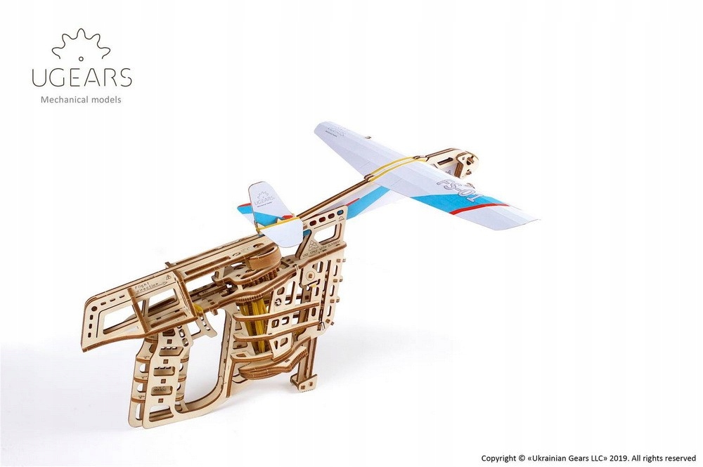 Ugears Wyrzutnia Samolotów drewniany mechaniczny model 3D do składania