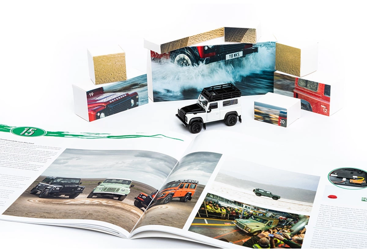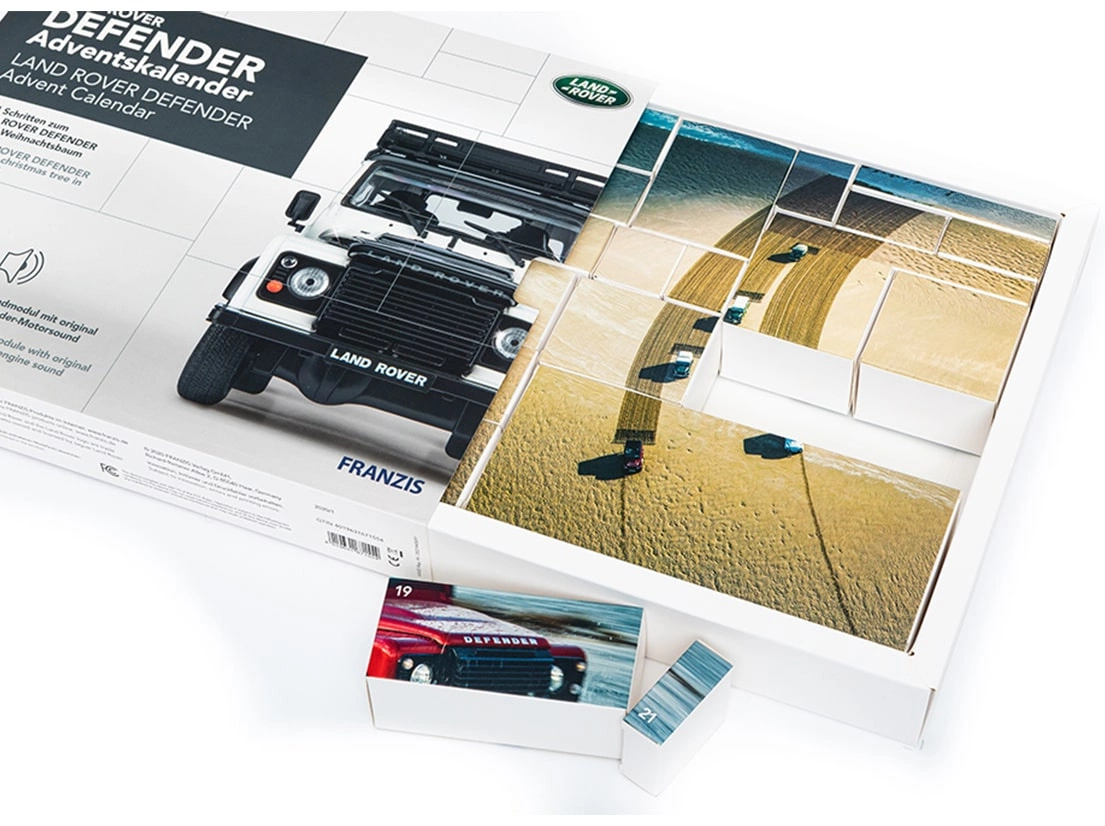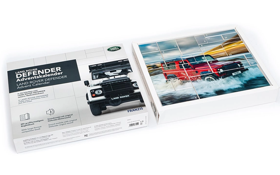 Kalendarz adwentowy Land Rover Defender od Franzis to doskonała propozycja dla miłośników samochodów i outdooru. Zawiera siedmioczęściowy model Defendera w czarno-białym lakierze, plastikową podstawę z modułem dźwiękowym, panele tła oraz instrukcję z informacjami o historii kultowego pojazdu. Elementy kalendarza są ukryte w 24 małych pudełkach, a każde otwarcie zwiększa oczekiwanie na Boże Narodzenie. Do zestawu dołączona jest 52-stronicowa książeczka autorstwa dziennikarza motoryzacyjnego Rolanda Löwisch, która w zabawny sposób przybliża historię Defendera. Model w skali 1:43 z 2007 roku pozwala na zabawę bez lutowania, wymagając jedynie dwóch baterii AA. Kalendarz adwentowy łączy w sobie elementy kolekcjonerskie, edukacyjne i rozrywkowe, oferując niezapomniany czas przedświąteczny.
