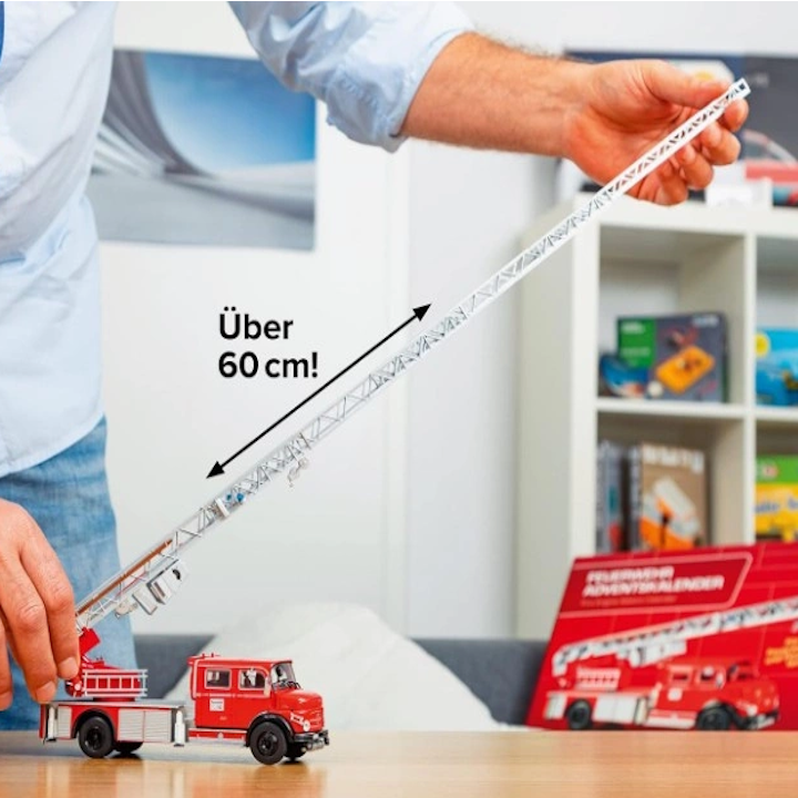 Kalendarz adwentowy „Straż Pożarna” od Franzis to wyjątkowy zestaw dla miłośników straży pożarnej, który pozwala na odkrycie świata ratownictwa w 24 krokach. Użytkownik tworzy model zabytkowego wozu strażackiego w skali 1:43, wyposażonego w wysuwaną drabinę obrotową. Zestaw zawiera książkę z ciekawostkami o straży pożarnej oraz historią znanych pojazdów ratunkowych. Montaż modelu jest łatwy dzięki szczegółowej instrukcji oraz dołączonym narzędziom, a wysoka jakość wykonania części zapewnia bezproblemowe składanie. Wszystko zapakowane jest w 24 wytrzymałe pudełka, które tworzą atrakcyjny motyw tematyczny. Po złożeniu modelu pudełka mogą służyć jako dekoracja. Kalendarz to idealny wszechstronny i bezproblemowy pakiet dla fanów straży pożarnej, który nie wymaga malowania.