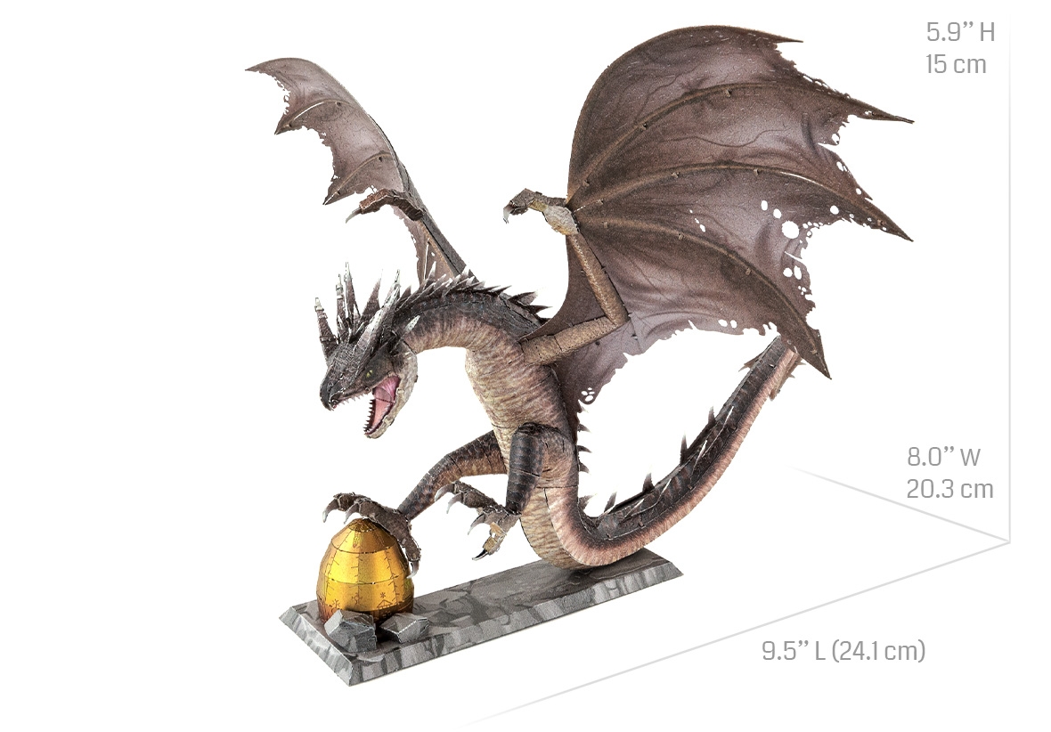Rogogon węgierski, znany z serii filmów Harry Potter, to jeden z najbardziej agresywnych smoków, którego Harry musi pokonać w Turnieju Trój magicznym, aby zdobyć złote jajo. Zestaw zawiera figurkę rogogona z płomieniami w paszczy, a także kończyny i skrzydła w postaci elementów do wycięcia i złożenia. W instrukcji budowy zaleca się użycie paru narzędzi do łatwego usuwania części z arkusza oraz pęset lub szczypiec do montażu, co ułatwi zaplanowanie działania i zrozumienie, jak poszczególne elementy się łączą.