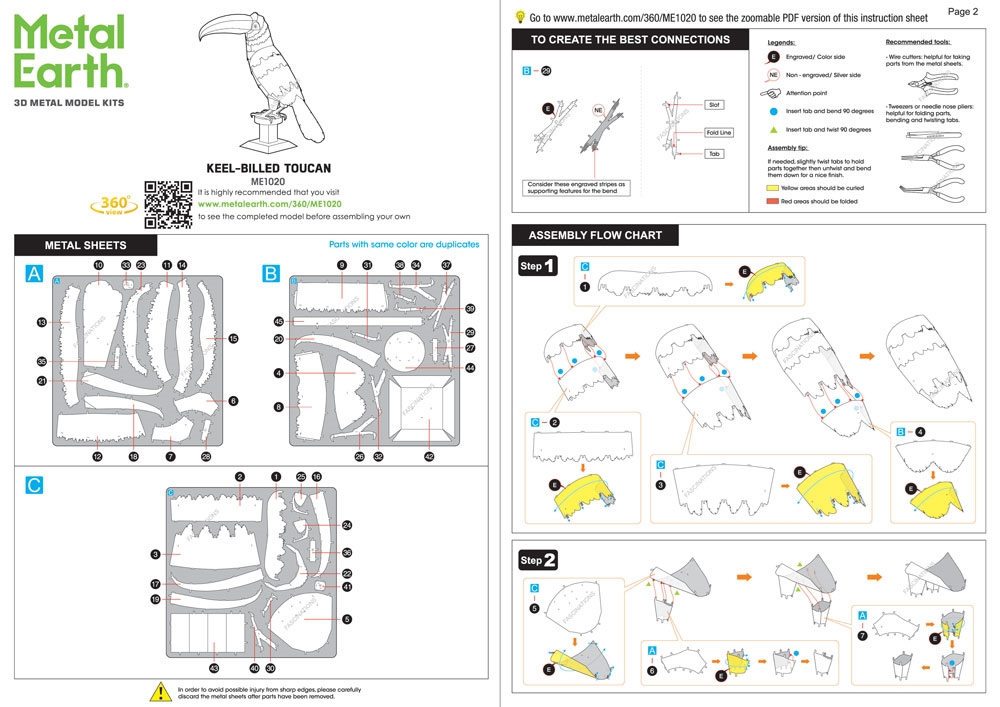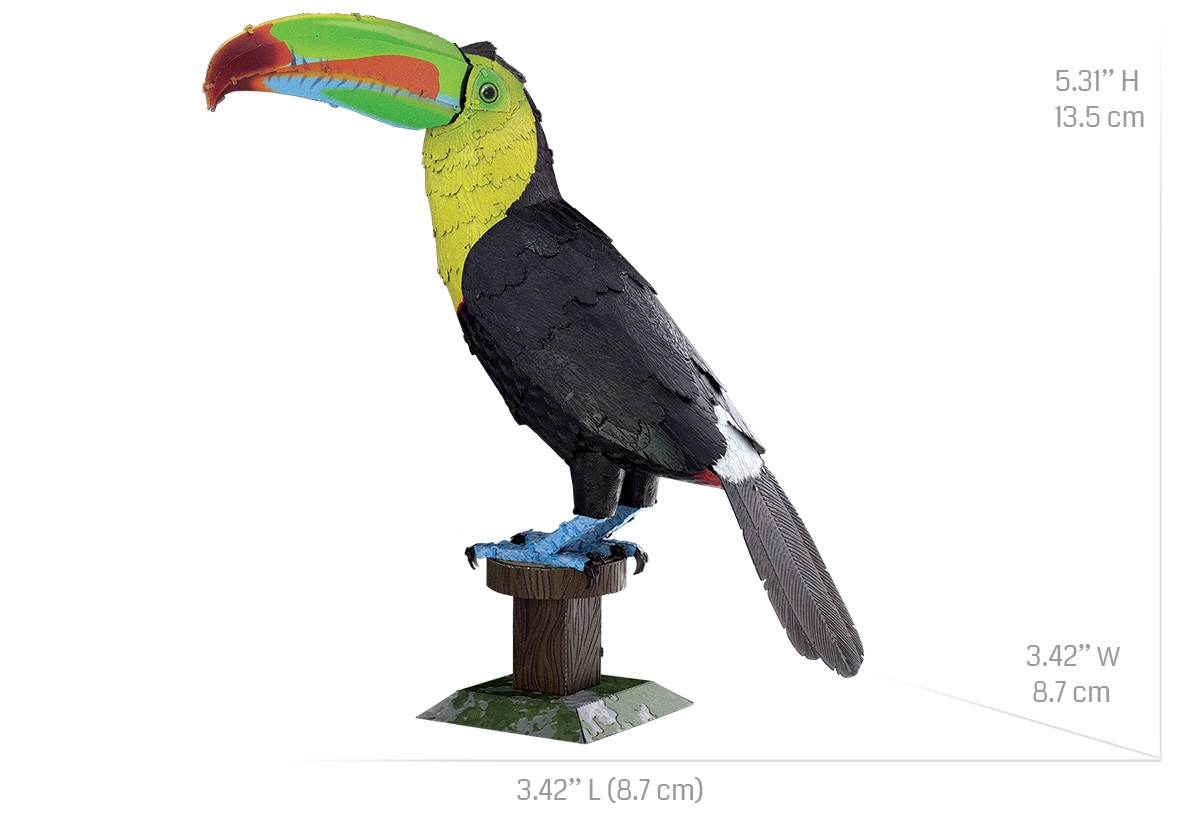 Tukan tęczo dzioby to ptak występujący w tropikalnych dżunglach od południowego Meksyku po Ekwador, będący ptakiem narodowym Belize. Żyje w małych, towarzyskich stadach liczących od sześciu do dwunastu osobników, które latają przez niziny i lasy deszczowe. W kontekście montażu różnych części, zaleca się użycie pęsety lub szczypiec z wąskimi końcówkami oraz dokładne planowanie, jak elementy będą się łączyć według załączonej instrukcji.